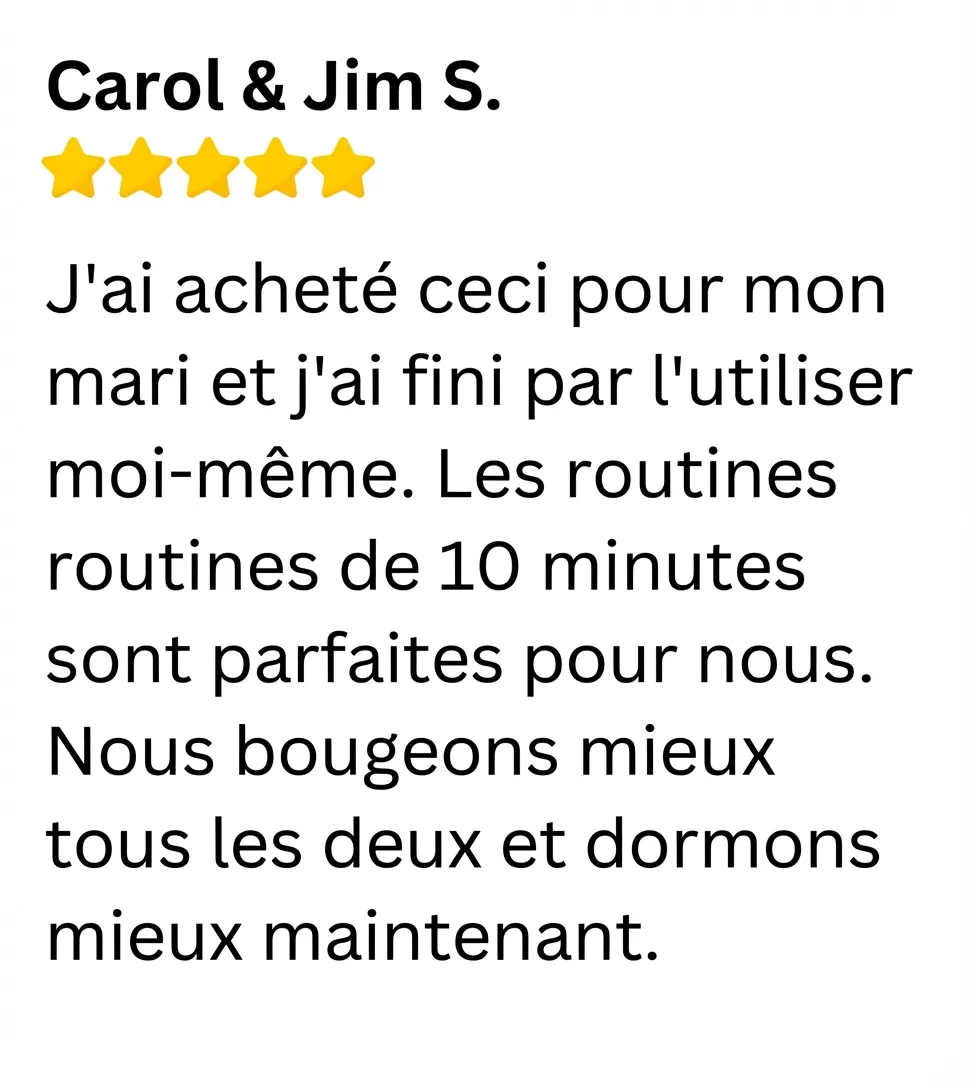 Vous n'êtes pas seul - et la vérité est que vous vous améliorez la stabilité, la flexibilité et la confiance peuvent être simple…quand on suit la droite routine étape par étape conçue spécifiquement pour les seniors.